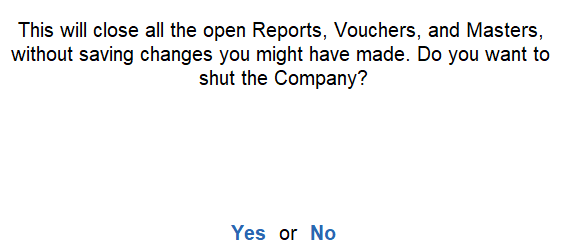 Shutting a company in TallyPrime is a simple and safe process that helps you manage your active sessions effectively. This feature is particularly useful when working with multiple companies or switching between different businesses.