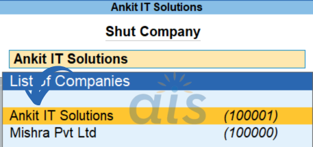 ✅ Note: “Shut Company” does not delete the company. It simply closes it from the current Tally session.