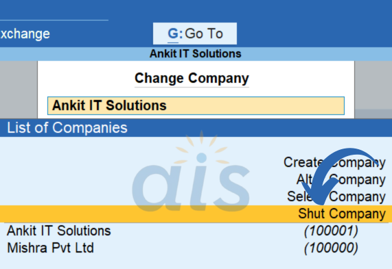 - Go to Select Company (Shortcut: Alt + F3).