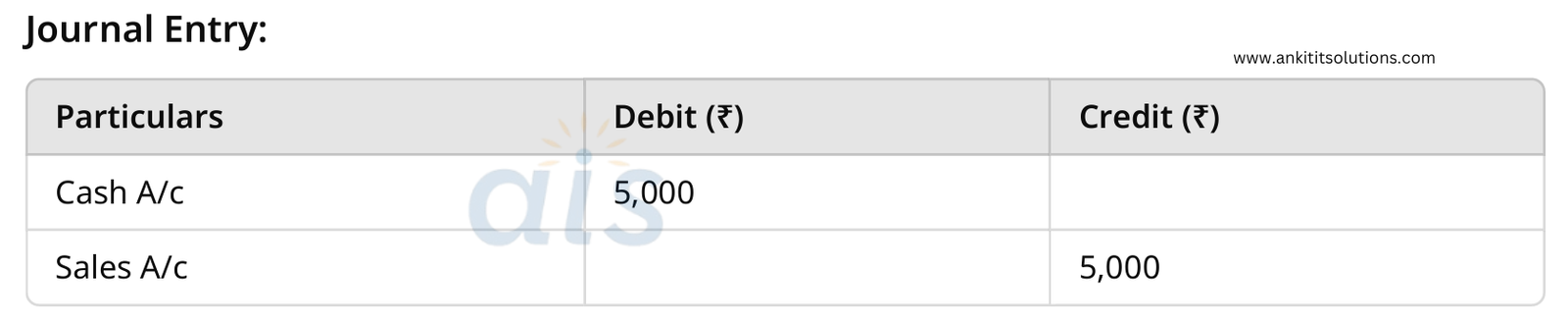 Transaction: Sold goods for ₹5,000 and received payment in cash.